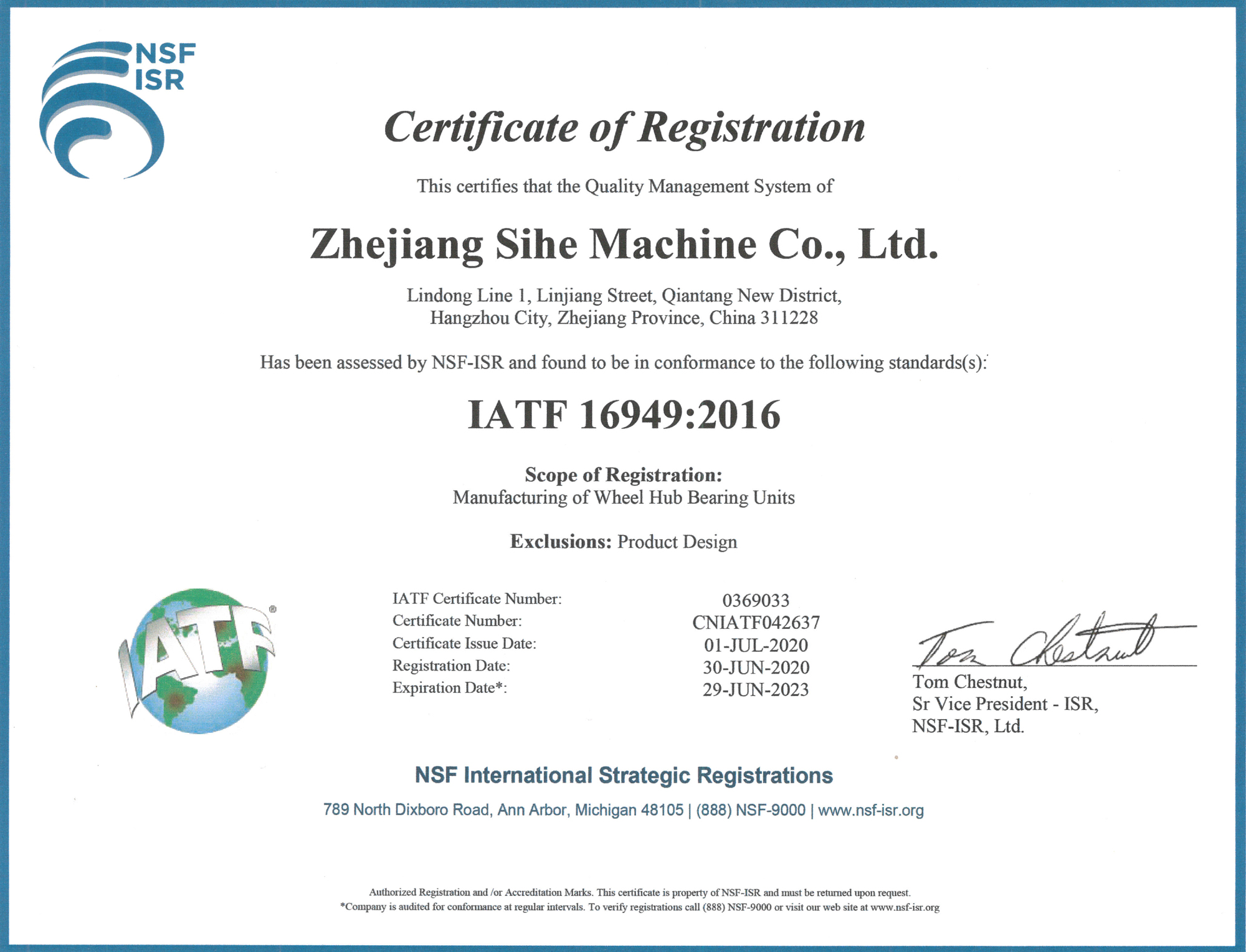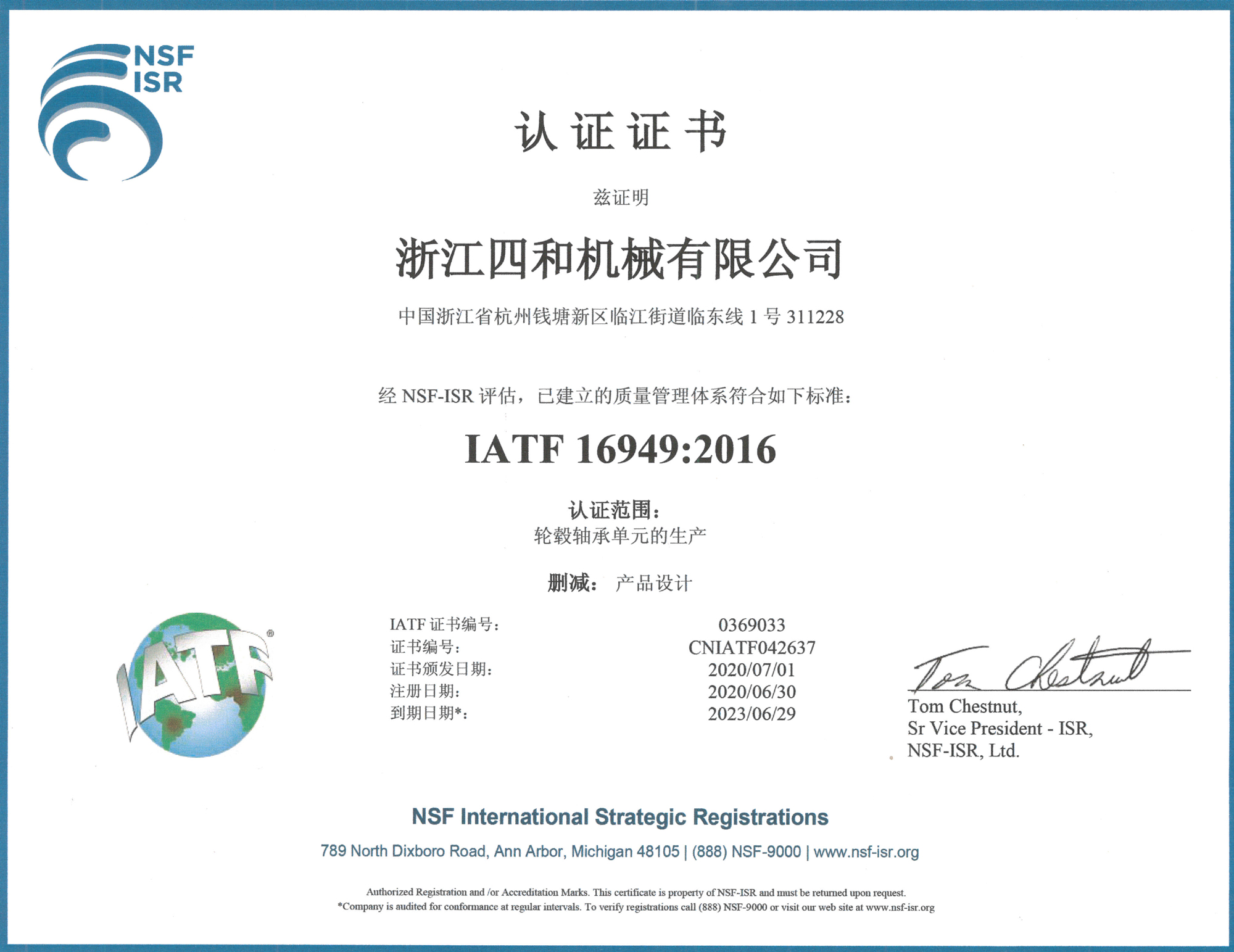 浙江四和機械有限公司成立于2004年,坐落于浙江省杭州錢塘新區臨江街道臨東線1號。汽車輪轂軸承單元是公司重點開發生產的主導產品之一,該產品具有集成化、單元化和小型輕量化的特點,被廣泛應用于各類轎車、商務車以及輕型卡車的前、后輪轂內,有很高的技術含量及廣闊的市場前景。